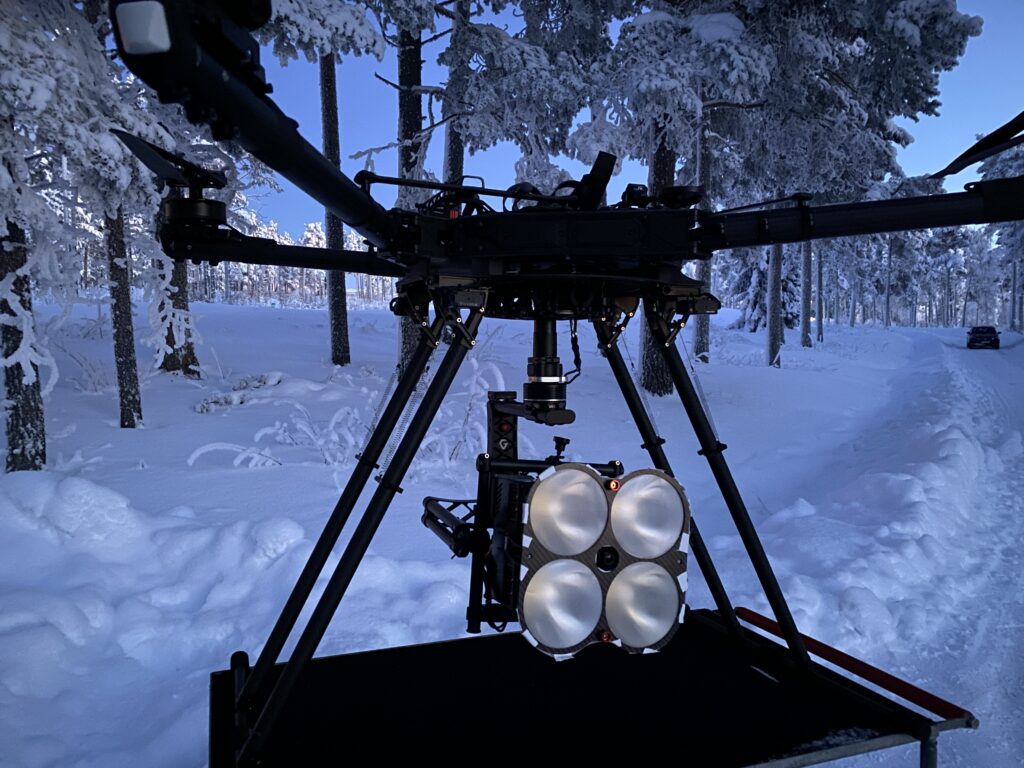 With the light drone we can create incredible light reflections and moving shadows. But we can also simply use the light drone as a fixed light source in hard-to-reach places. Both on film and still image productions. We have also helped the VFX crew to simulate the searchlight on a helicopter on various film productions.